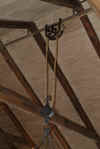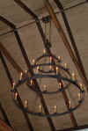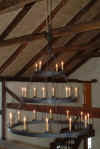 | A mid-nineteenth century barn was being converted into a residence and the owner requested a chandelier and fireplace screen that were correct to the period, including the custom pulley system. Click on any image for larger pictures. |