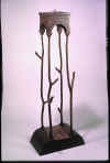 From the Aral Sea series. The two drawer table has a depiction of the shoreline as it recedes. Handles represent driftwood. The pen and ink holder on the right is a boat that is now grounded. |